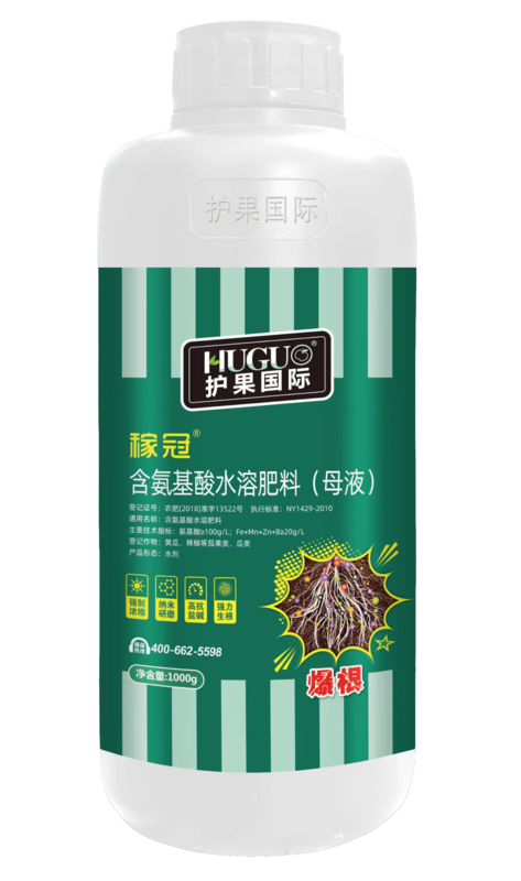 本品是精选高纯度原料,全水溶技术, 经过高位强制螯合浓缩研发生产的含氨基酸水溶肥料,该产品所使用的氮磷钾原材料均为工业级或食品级,并复配高活性螯合氨基酸、小分子碳、有机质、生物蛋白质、核酸以及多种螯合态微量元素等,经高速剪切分割,高效乳化分解,高级纳米研磨,完全按照国标生产。产品纯净,多效合一, 完美结合,物理性能稳定,纯度高、养分全、分子小、作物不经转换可直接吸收利用, 无残留,无激素。明显提高作物产量,改善作物品质,是践行减量增效,发展绿色无公害农业的理想产品。